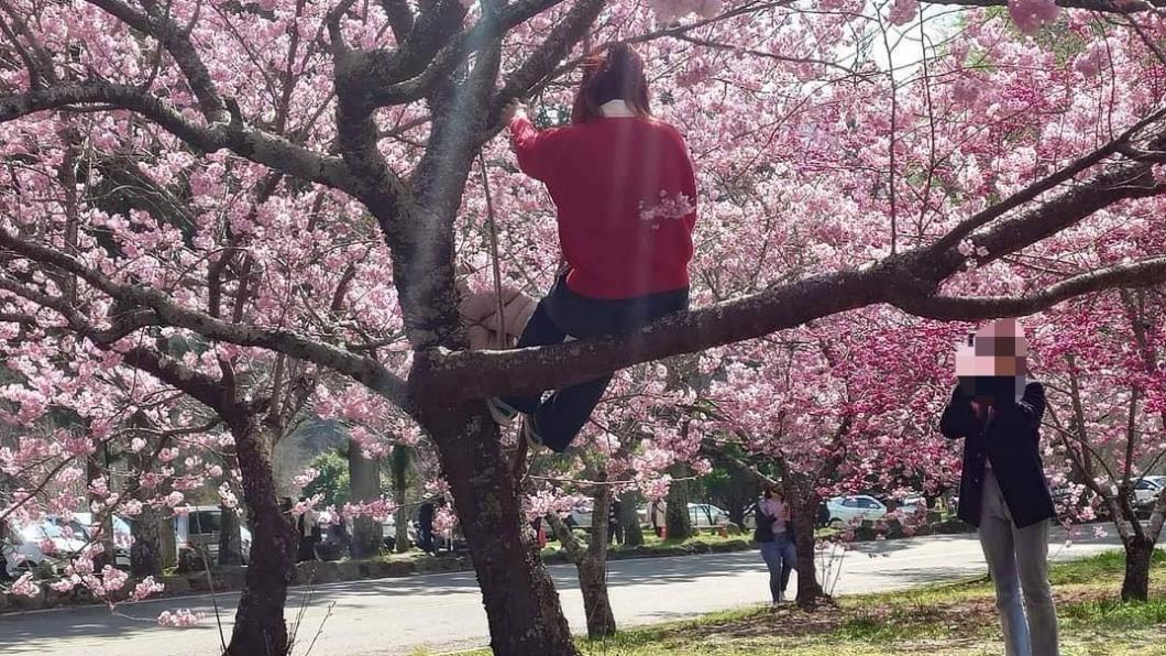 遊客為拍美照「爬櫻花樹拉枝條」!武陵農場怒:學猴子爬樹並沒有比較厲害!