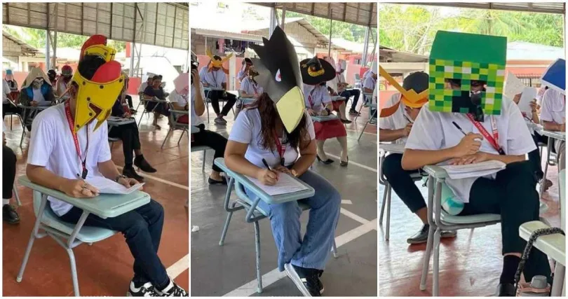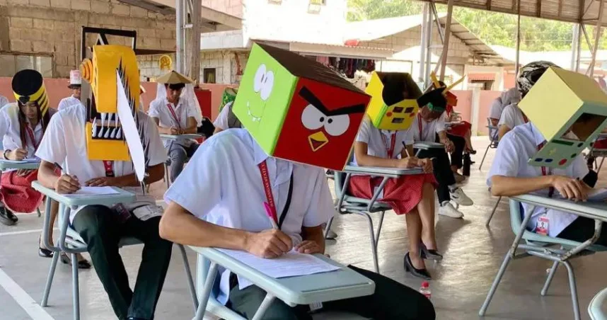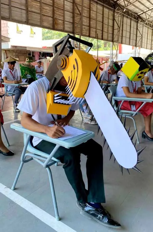 菲律賓大學「防作弊帽」又來了! 學生化身憤怒鳥、皮卡丘、鏈鋸人考試