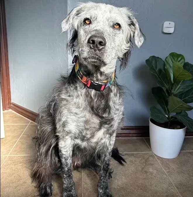 ▼巴斯特原本是一隻健康的黑色拉布拉多犬,大約兩年半前,主人給牠洗澡時,驚訝地發現牠的一些毛髮變成了白色,就像一個個白色的斑點。隨著時間的推移,巴斯特的黑色毛髮逐漸脫落,長出的白色毛髮越來越多,直到全身都變成白色,一眼看去仿佛變成了另一隻狗狗。