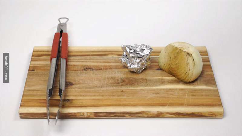 ▼燒烤之前將鋁箔紙團成團,擦拭烤架,上面的污垢很容易就能去掉。再將洋蔥切成兩半,繼續擦拭烤架,深層清潔也很重要。