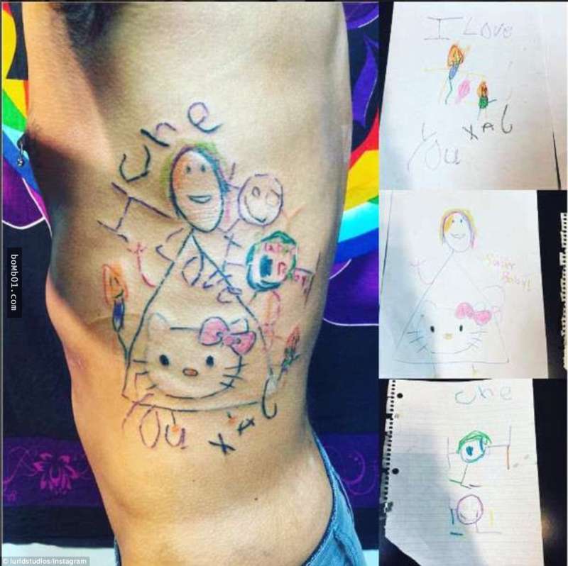 13個決定要把「孩子的繪畫作品刺在身上保存一輩子」的父母。