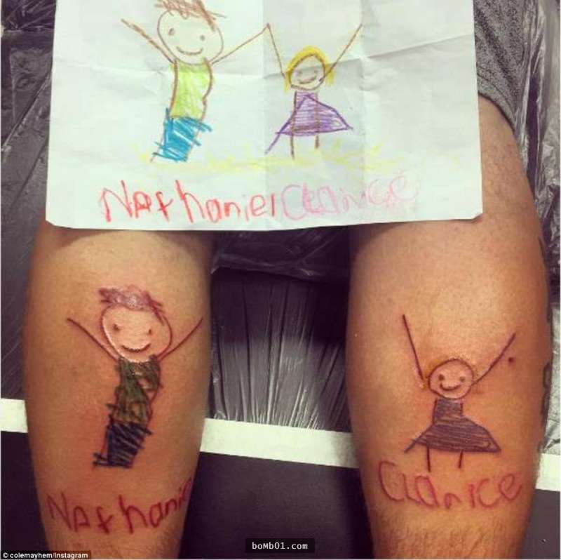 ▼8. 為了兩個前世情人Nathaniel和Clarice,這位爸爸不惜把男性象徵-腿毛都剃光,紋上女兒超有愛的自畫像,這親暱的父女情也太閃了吧!(不過相信大家也不介意被亮瞎,笑)