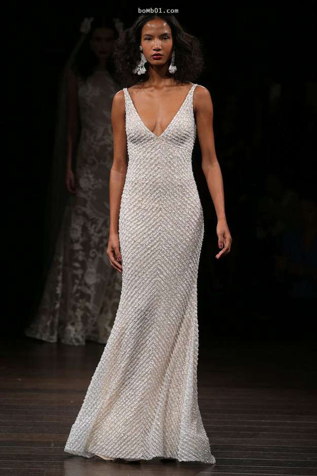 ▼紐約知名設計師的又一力作,將刺繡的元素很好的運用到婚紗上,必將掀起一段潮流。