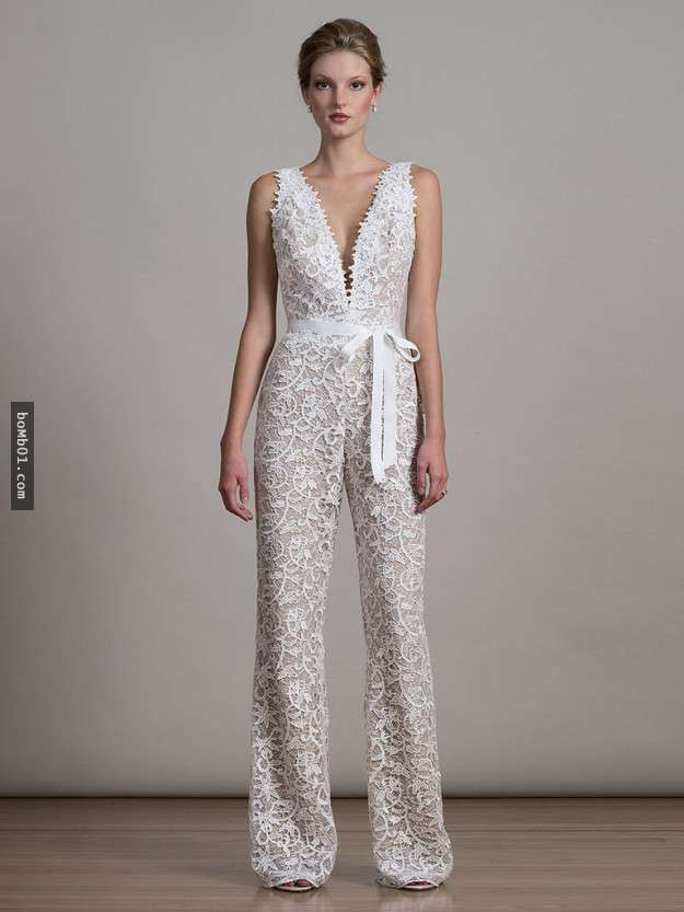▼誰說婚紗只有裙式的,這種充滿霸氣的女強人刺繡連身衣打破了人們傳統的觀念,更加前衛。