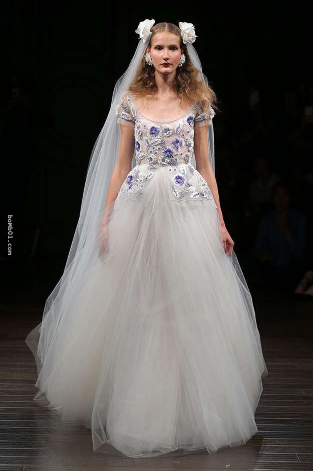 ▼那伊姆汗的藍色刺繡花朵婚紗,每一朵盛開的花朵都如此精緻,花仙子的風格也是充滿新意。