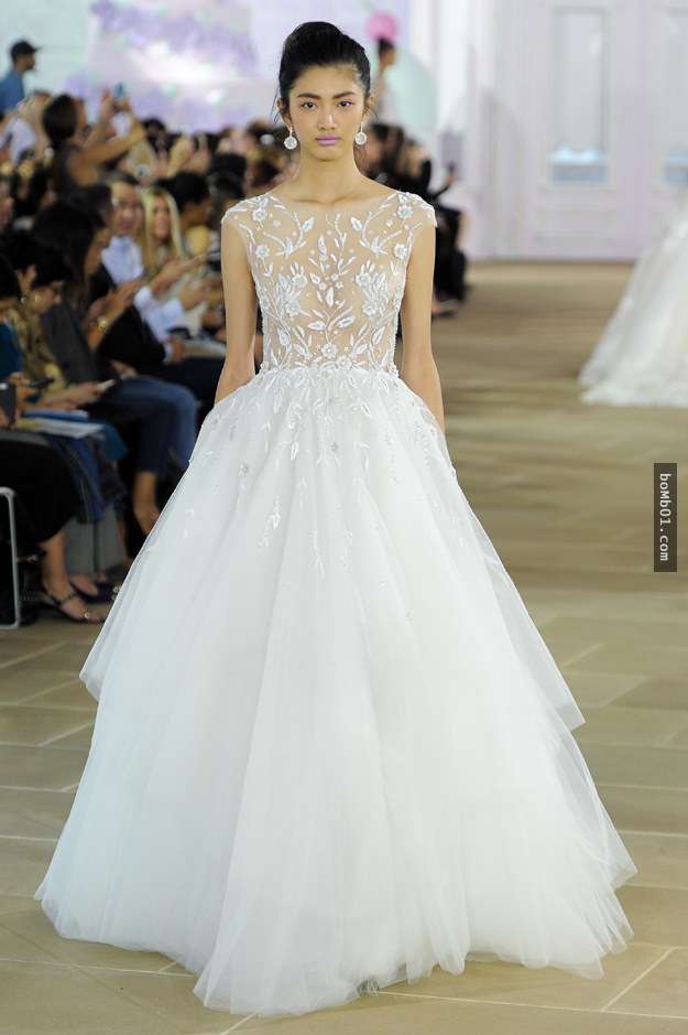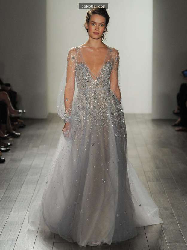 ▼Monique Lhuillier是一對夫妻創立的品牌,這件高貴的婚紗充滿了空靈的感覺。