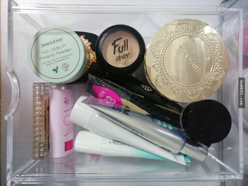 ▼照片中最底層的G樓都是平常比較用不到的東西,例如有粉的吸油面紙、媽媽不要的晚安凍膜、新的蛋蛋跟粉撲等。