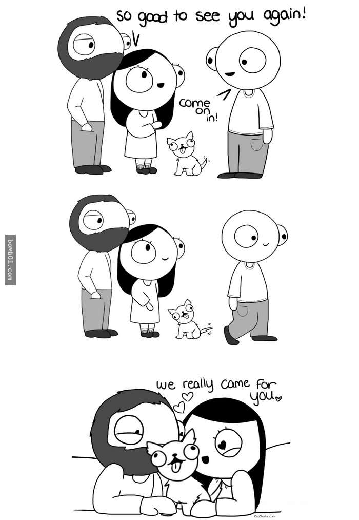 ▼看到牽狗狗的朋友打招呼「很高興看到你」 ,只見主人對狗狗說「走了」,狗狗卻留下來不走,於是偷偷的開心「我們想見的其實是狗狗。」