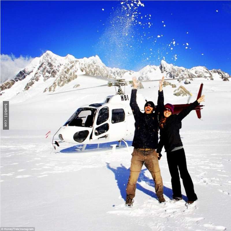 ▼還曾搭乘直升機來到紐西蘭的山頂。