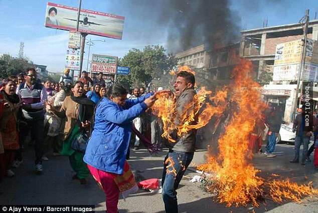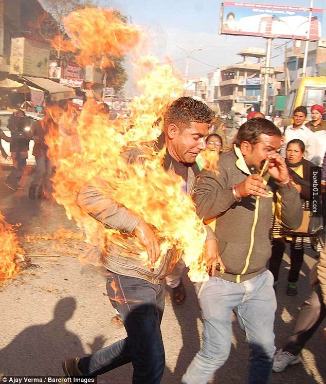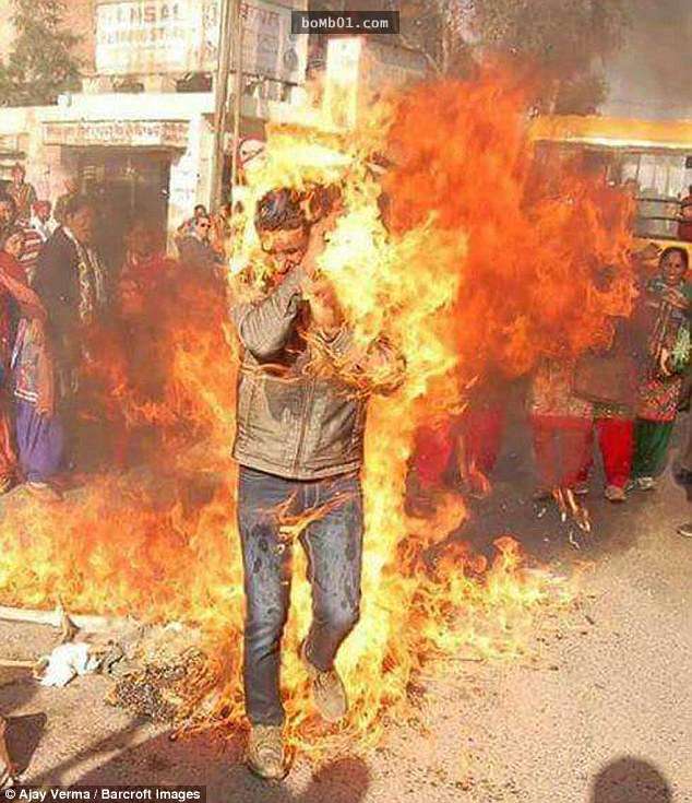參加示威遊行時,抗議者經常會做出一些危險舉動,有時可能會造成傷害。不久前,印度巴廷達(Bathinda)的合同工教師們來到街頭抗議,因為政府沒有按照約定,在兩年期滿後為他們轉正。抗議中人們為表達憤怒,開始焚燒政府官員的肖像,沒想到一名抗議者竟然引燃了自己的衣服。
