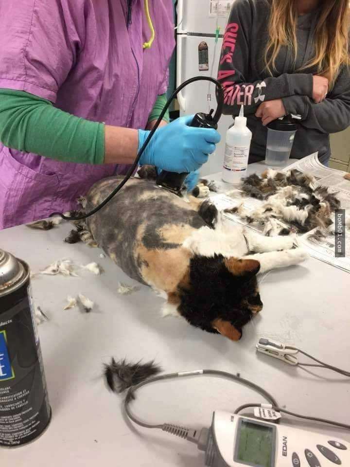 ▼男子隨後將三花貓帶往當地動保組織「Animal Rescue League Shelter & Wildlife Center」,動保組織接手後便開始替他去掉身上的團團毛髮,總共剪下了高達1公斤的毛球!Hidey 終於可以不用再背負著沈重的負擔,自由行動。