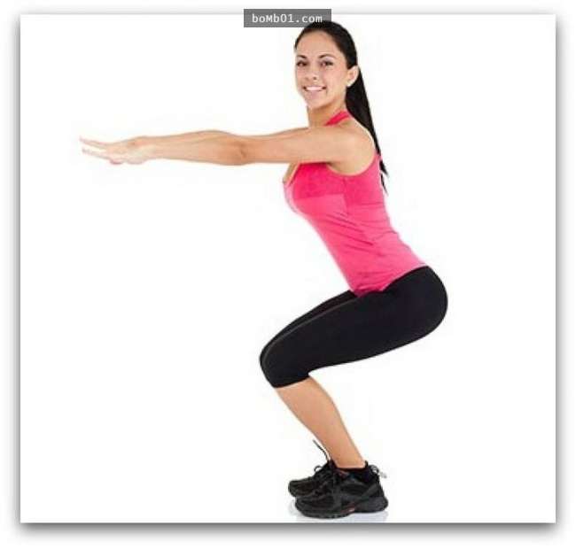 雙腳打開與間其寬,膝蓋和腳要成一直線,然後慢慢的蹲下去,假裝自己坐在一個想像的椅子上,如果覺得會不穩的話,可以將手臂往前伸,就比較容易保持平衡了。