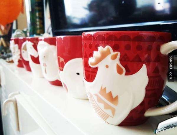 ▼不過說到過年當然還是要一片紅紅的才喜氣啊!這些紅底雞圖樣的馬克杯超應景,在過年拿出來用太適合了!