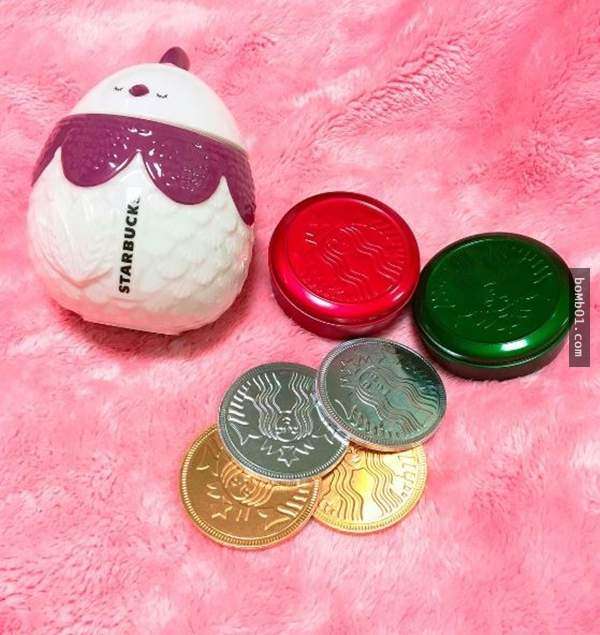 ▼與一樣很受到歡迎的星巴克金幣放在一起,果然還是公雞杯最可愛!