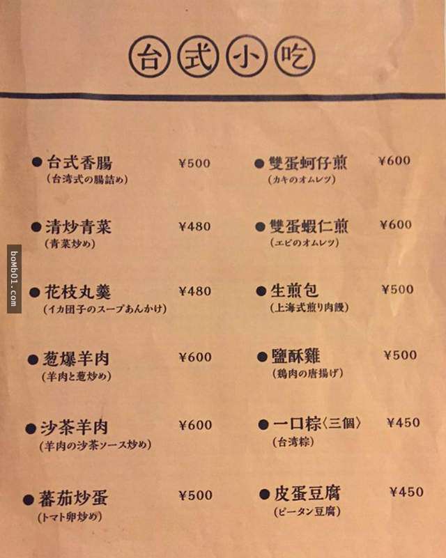 ▼無論是在店內還是店外,從裝潢、招牌、標語等都是大家最熟悉的「台灣懷舊風」,而且裡面連菜單都是以華文為主,再附上日語註解,讓客人可以了解台灣的美食和文化後再選擇自己想要嘗試的餐點,可見這位老闆真的非常有心思。