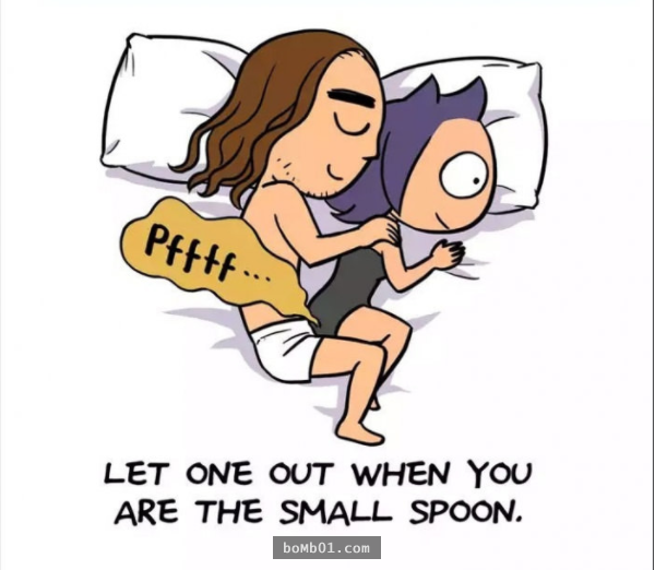 剛開始交往時,我們想在愛人面前維持完美形象,放屁這類「低俗」的事堅決不會做,想放屁時也要忍耐。當兩人放下防備,徹底打開心扉,在對方面前放屁也變成了理所當然的事。與愛人同床共枕時你會選擇哪種放屁方式?應該很少有人用第一種吧。