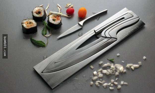 ▼多種尺寸菜刀,結合在一起不佔空間。