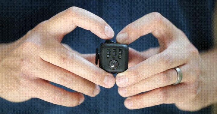 ▼舒壓小方塊,上面有搖桿、密碼鎖滾動珠、開關、轉盤、按鈕、鋼珠六種小設置,非常治癒。