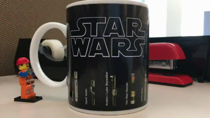 ▼這款咖啡杯遇熱就會變色,光劍出現的樣子很夢幻。