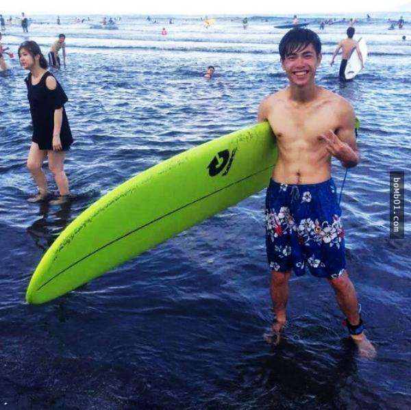 ▼雖然不笑看起來酷酷的,但衝浪時配上陽光笑容讓許多人為之傾倒。