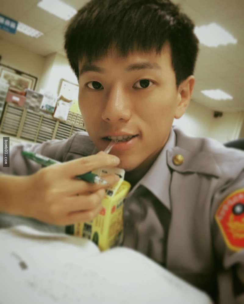 ▼俊俏臉龐帶有孩子氣,看來童顏不只是女神們的專利,童顏帥警的魅力更是無法檔。