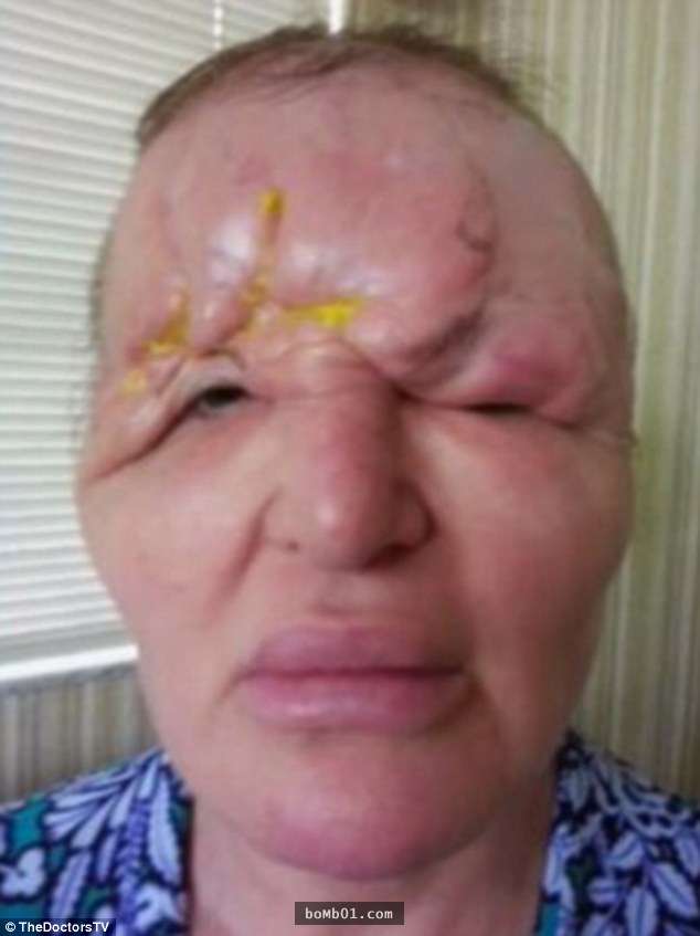 ▼醫生將兩種應該分別注射的填充物混用,導致她嚴重毀容。剛開始她的臉只是有些紅腫,她沒有在意,以為是正常反應。