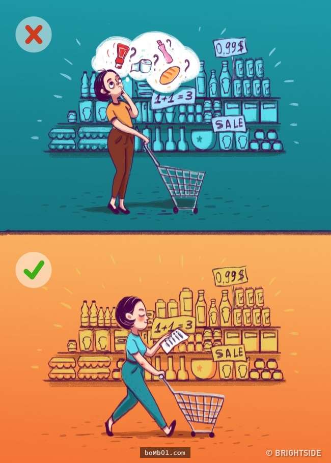 ▼8.把購物車中的東西放回去:去超商時我們經常不自覺買很多東西,這其實是多巴胺的影響。列好清單,去超商後直接購買需要的商品,不要逛。