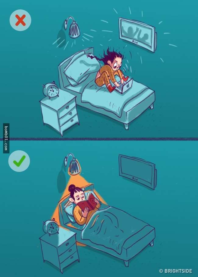 ▼10.睡前一小時調暗燈光:昏暗的燈光會給大腦傳遞訊號,讓它知道休息時間就要到了。這時褪黑激素出現,你的新陳代謝也會慢慢下降,身體和心靈都進入睡眠模式。