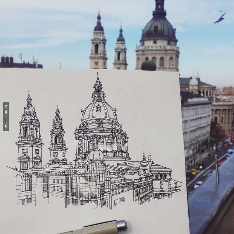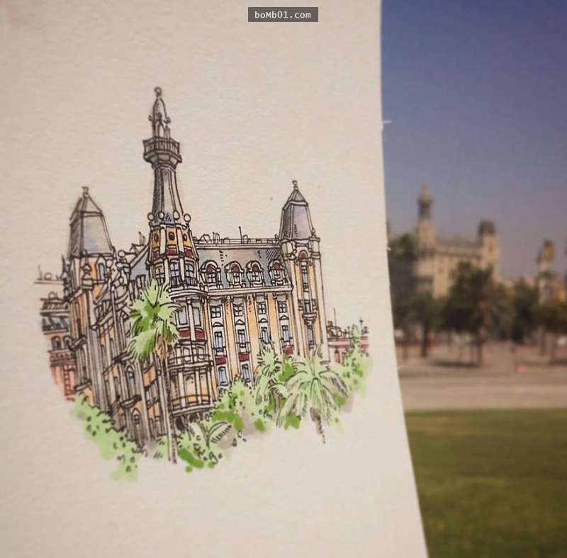 他在背包旅行時不像別人只用相機記錄,反而用畫筆畫出「讓人看到入迷的景點圖」!