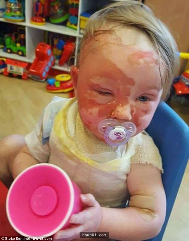 看見這一幕的艾瑪當下心都碎了,她立馬就用一條浸濕的毛巾鋪在小女兒身上降溫,然後撥打緊急電話求救。在送院急救後,莉碧的傷勢穩定了下來,但是她被嚴重燙傷的細嫩臉龐卻長出了大水泡,以後或許會留下明顯的疤痕,唯一慶幸的是,醫生表示幸好熱水沒有噴進莉碧的眼睛裡,否則的話,可能還會造成莉碧的眼睛失明。