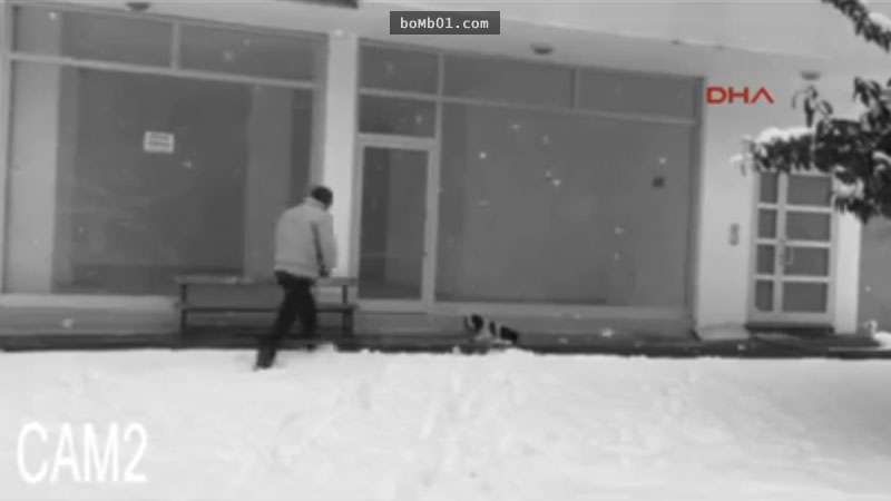 路邊監視器拍到「一名男子慢慢靠近冷得發抖的流浪狗」,接著的畫面讓大家都看哭了…