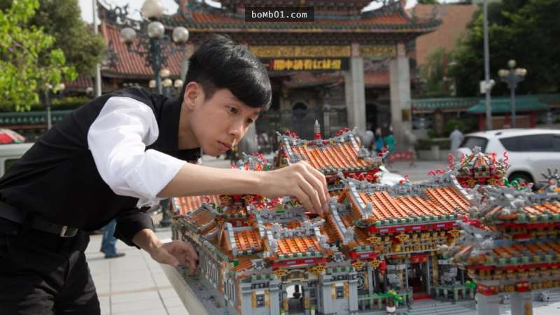 ▼協會邀請他用4萬個樂高零件創作台北龍山寺,並到不同地方展出。為了完成這件作品,他花費了3個月時間,這精細的作品讓他備受關注,陸續接到很多商業合作,其中包括NIKE、福特汽車等等。現在他還在進行自己的樂高事業,並把住家改成了工作室,裡面滿地都是樂高零件袋,還有一整面牆的零件櫃。