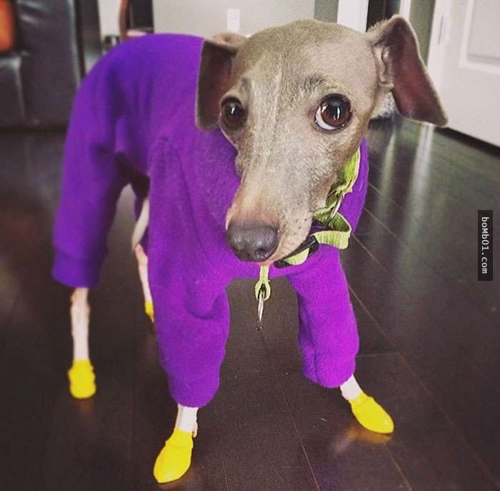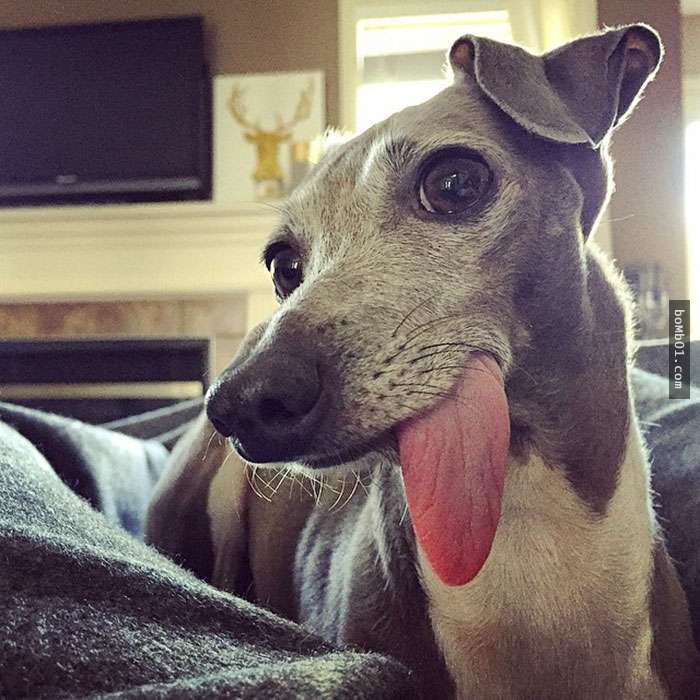 ▼Weezy的牙齒不好,為了牠的健康,獸醫幾乎拔掉了牠全部的牙齒,只剩下兩顆,所以牠總是吐著舌頭。