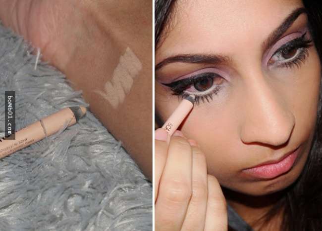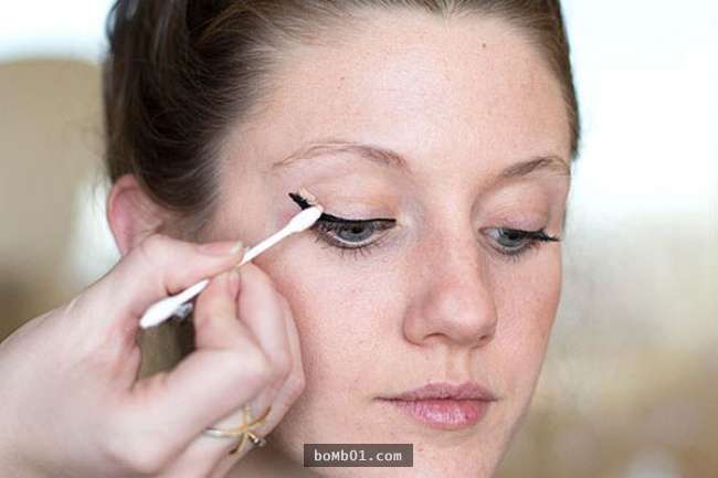 ▼6.手殘畫歪眼線的時候,可以用棉花棒沾一點遮瑕膏,就能修復畫錯的地方。
