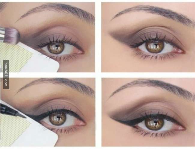 ▼5.畫出貓眼眼線的妙招:將信用卡或厚紙片貼在眼尾,角度稍微上揚,然後照著描就可以了!