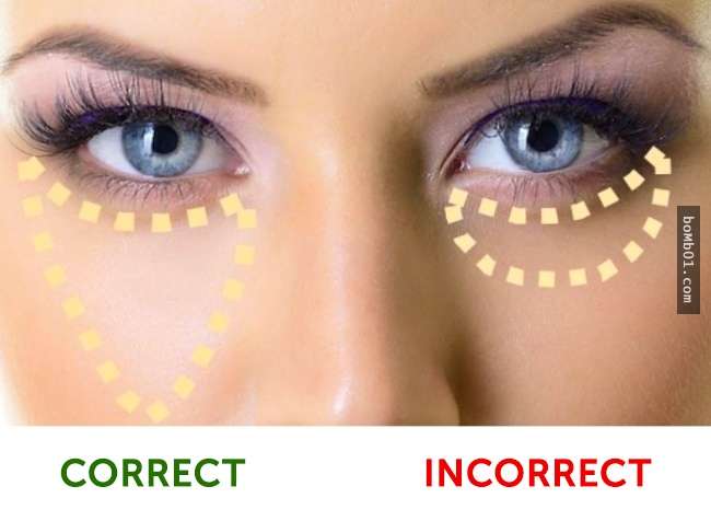 ▼1.很多人用遮瑕膏的範圍太小,看起來不自然,正確的用法是在眼下畫一個三角形。