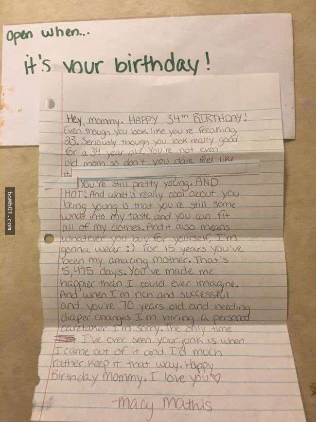 2017年02月11日面對親人的離去,那種傷痛總是難以癒合。美國喬治亞州一位媽媽辛蒂(Cindy Mathis)就跟女兒梅西(Macy)感情甚篤,但當梅西不幸因為意外身亡後,辛蒂卻找到梅西事先寫給「未來媽媽」的信件,而裡面的內容也讓她不禁啜泣了…