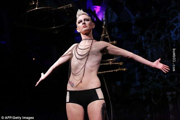 ▼在這場非比尋常的內衣秀上,16名模特兒穿上了性感蕾絲材質的內衣褲、穿上長靴、高跟鞋,披上漂亮絢麗的毛衣,在伸展台上展現著無比的自信。