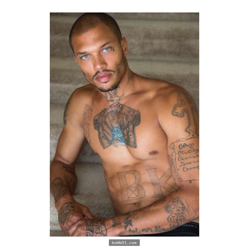 ▼傑瑞米在2014年因為違反槍支管理法令,被加州警方逮捕後,許多民眾都意外被囚犯照上那張剛毅的臉龐和粗礦的氣質吸引。加上傑瑞米的眼角還有一個特別的淚滴狀刺青,搭配上一雙迷人的藍眼睛更是顯得魅力四射,當下就轟動了整個網絡。