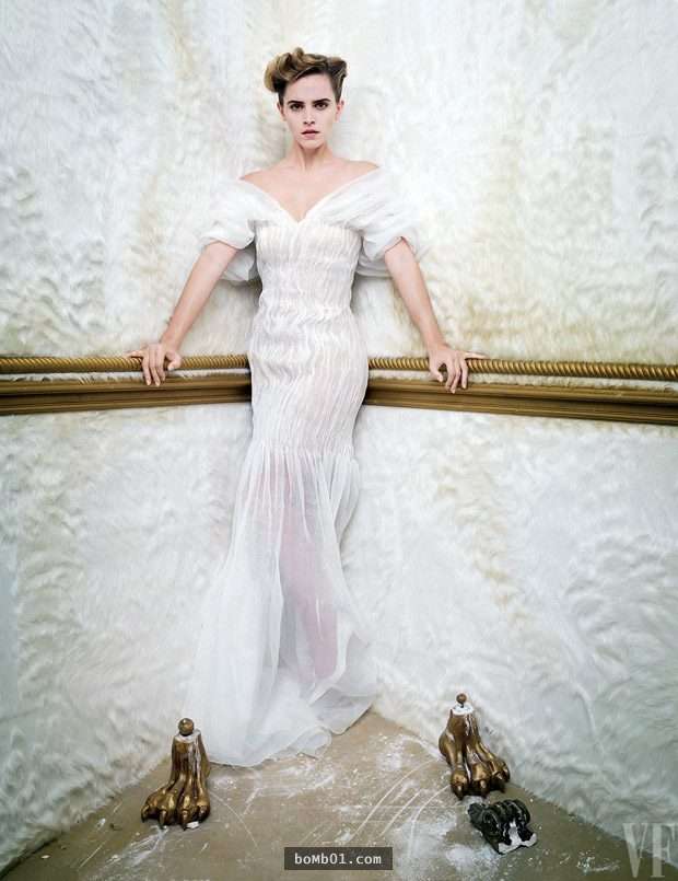 2017年03月01日英國女演員艾瑪•華森(Emma Watson)近日都在為她主演的《美女與野獸》,展開了緊鑼密鼓的宣傳行動。日前艾瑪華森更是受邀為外國知名雜誌《Vanity Fair》擔任封面人物,大方、豪放的她還挑戰真空上陣,為女性婚紗詮釋出別一番的迷人風情,完美展現少女蛻變成窈窕淑女的驚艷變化!