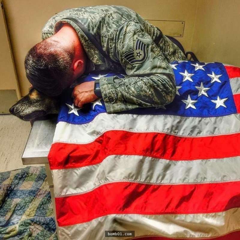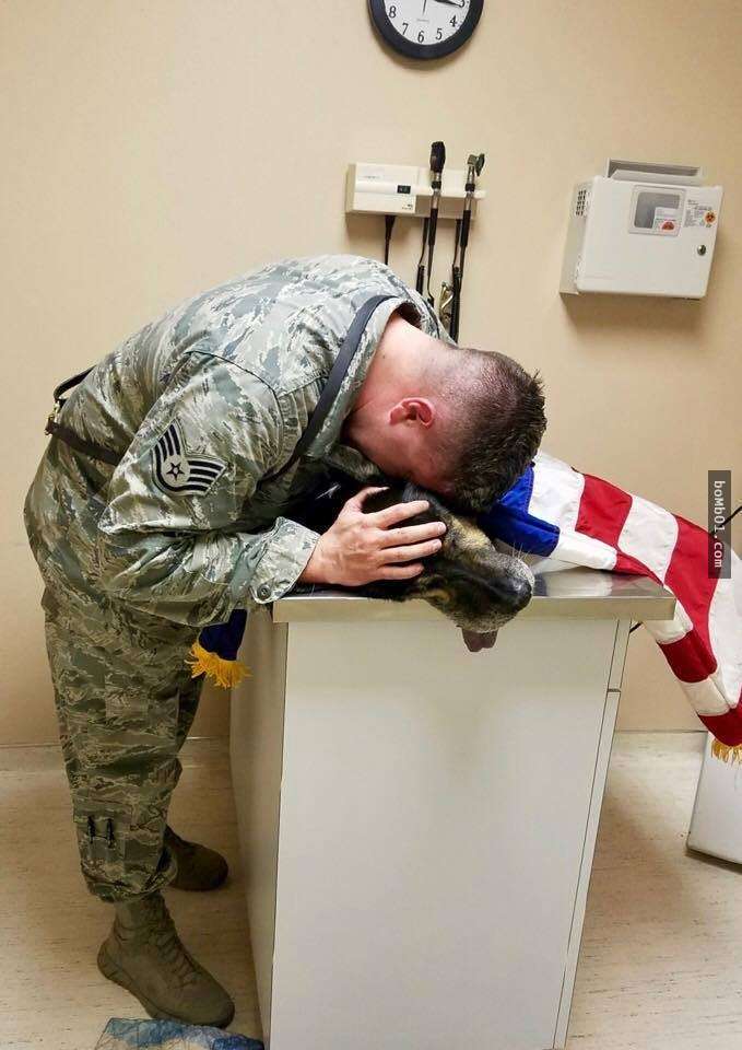 這名軍人在軍犬臨終前的每一分一秒都陪在身邊,他「一句話」就讓現場所有人都泣不成聲…