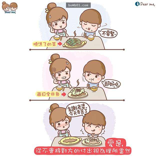 ▼看到你做的飯菜搞砸了,也會開心的全部吃掉。