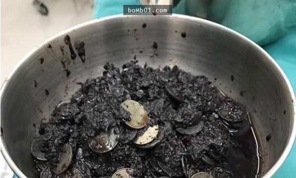 ▼Bank體內的很多硬幣已經被腐蝕或溶解,看起來很恐怖。整個手術時間長達4小時。