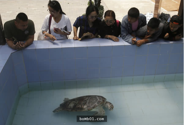 2017年03月08日在亞洲一些國家和地區,龜是長壽、幸運的象徵。很多人認為,將硬幣扔到水池中的烏龜身上能夠帶來好運。泰國25歲綠海龜「Bank」就住在拉差(Sri Racha)的一個水池內,遊客們經常會把硬幣扔到牠身上,祈求帶來好運。