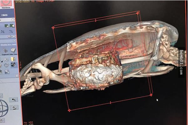 ▼獸醫以為牠長腫瘤,掃描後才發現,牠的體內有一大堆硬幣,還有魚鉤等異物。