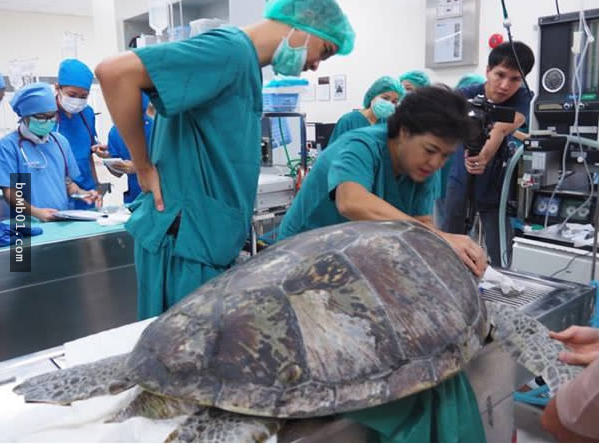 ▼朱拉隆功大學獸醫學院的五位獸醫為牠做了手術。經過全身麻醉後,獸醫從手術切口位處將牠體內的硬幣一一取出,最後一共取出了915枚硬幣,重量高達11磅。