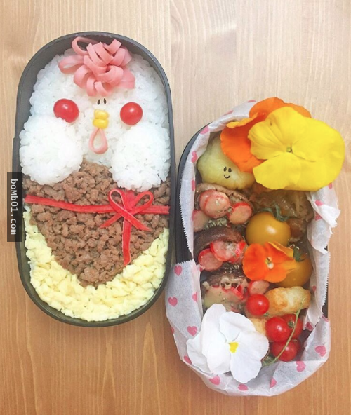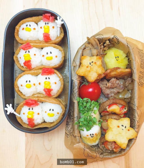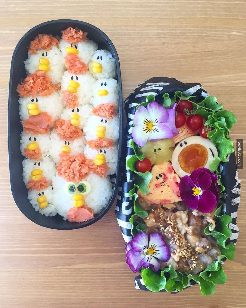 ▼這位名為「ぺろり」的便當達人在IG上相當有名氣,因為她經常都會把自己做的卡通便當拍照Po到網上。而且有趣的是,這位人妻還非常喜歡用「雞」作為她的便當題材,把飯糰捏成一隻隻的肥雞造型,再搭配五官等小細節,立馬就把普普的便當變身趣味滿滿的料理了。