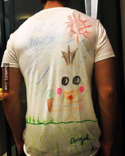 ▼然而在長久的相處下來,梧桐妹和修杰楷的關係反而卻越來越友好和親密,可愛的梧桐妹還試過送他一件自己親手繪製的衣服,讓興奮的修杰楷更是開心Po文,直呼:「耶!我也有Angel(梧桐妹)大師親手手繪設計款,太開心了!」,可見父女倆間的相處非常融洽和溫馨。