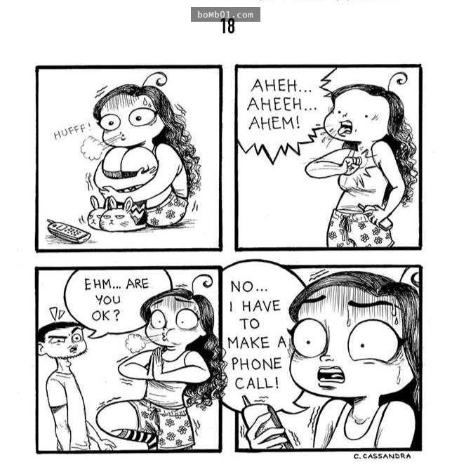 ▼18.女子:「咳咳咳」男子:「妳還好嗎?」女子:「不好!我要準備打電話了!」