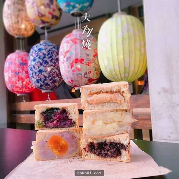 ▼台中大判燒的特色之一就是它有許多口味,而且料多實在!大判燒包含了14種口味,包含紅豆、奶油、芋頭、菜脯、地瓜、抹茶紅豆、乳酪起士、水晶花生跟芝麻、巧克力、玉米起司、泡菜起士、黑胡椒鮪魚及芋頭蛋黃,當顧客一次購買多個時,還會貼心附贈紙盒包裝。